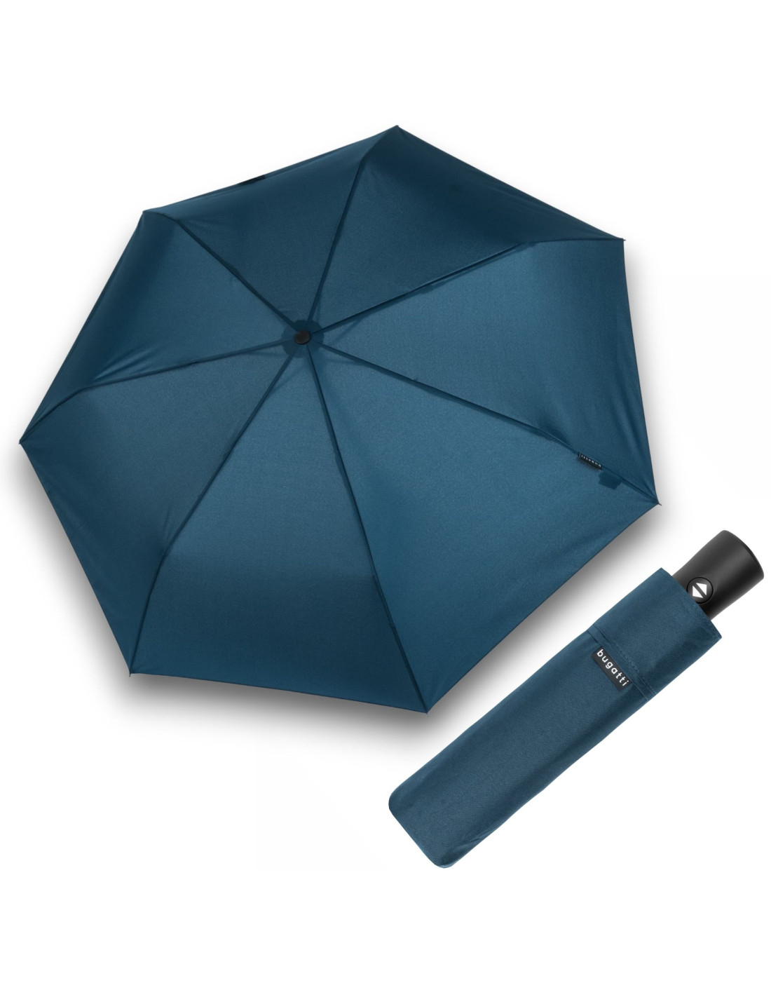 Elegantní pánský plně automatický skládací deštník od trendy značky Bugatti. Deštník zaujme i svou velikostí s pouhými 27 cm délky se vejde do každé kabelky. Konstrukce z ocele a sklolaminátu poslední díl ramene ze sklolaminátu zajišťuje pružnost deštníku ve větru. Polyesterový potah je odolný proti změnám vlhkosti a teplot, nesráží se.