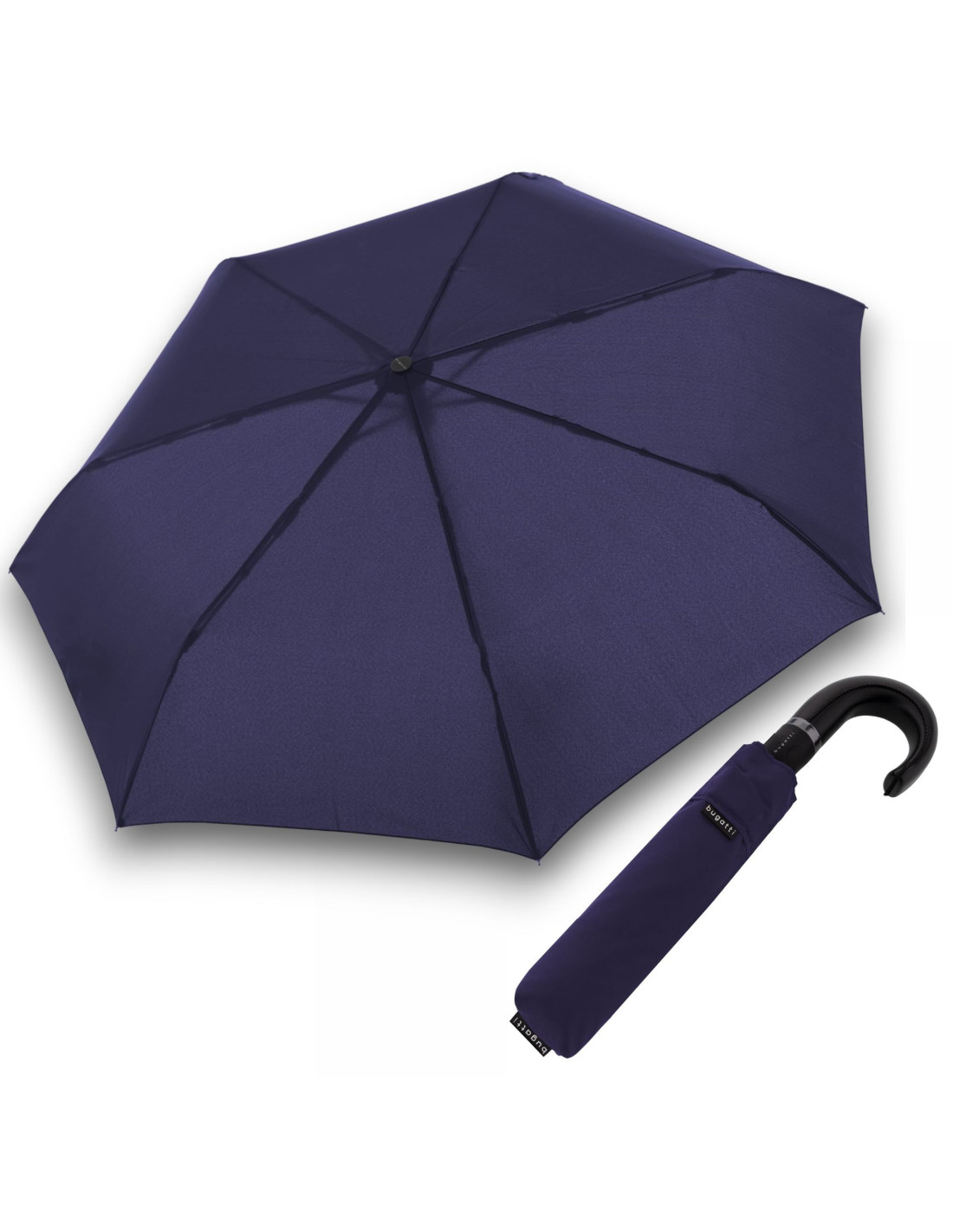 Elegantní pánský plně automatický skládací deštník od trendy značky bugatti. Konstrukce z hliníku, ocele a sklolaminátu poslední díl ramene ze sklolaminátu zajišťuje pružnost deštníku ve větru. Polyesterový potah je odolný proti změnám vlhkosti a teplot, nesráží se.